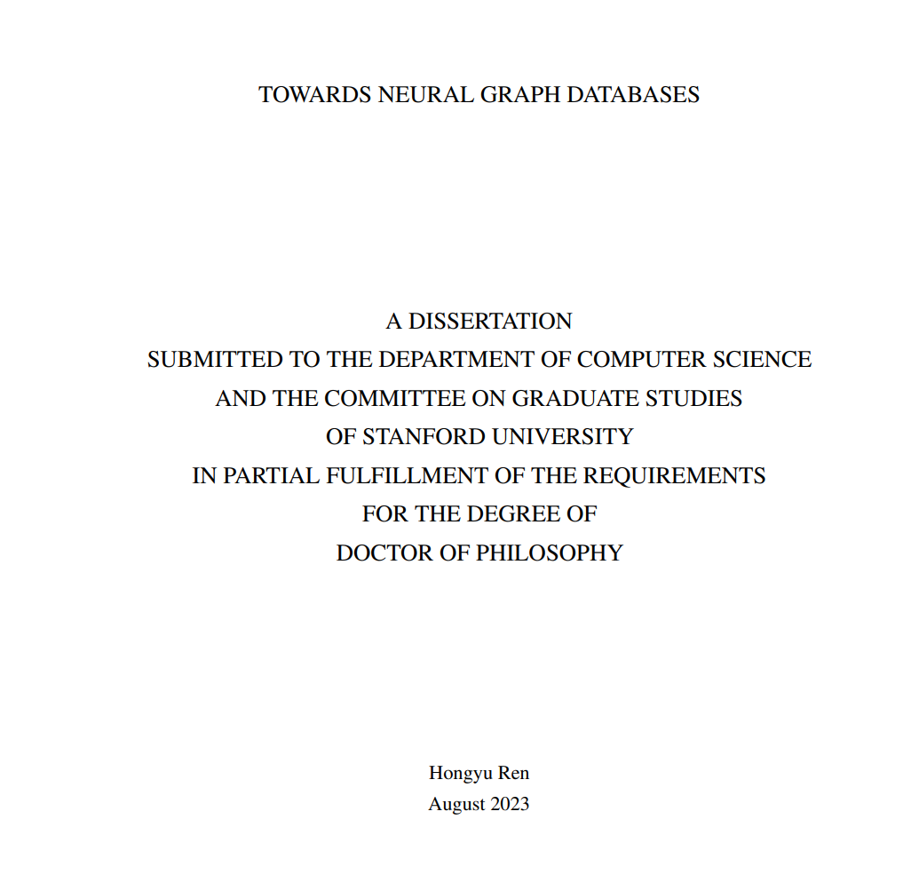神经网络如何与图数据库结合?斯坦福Renhongyu博士论文《神经图数据库研究》,详述神经图查询答案方法、数据集、系统、指标和广泛的应用。