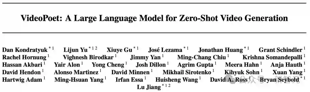 作者:Dan Kondratyuk,Lijun Yu,Xiuye Gu,José Lezama,Jonathan Huang,Grant Schindler,Rachel Hornung,Vighnesh Birodkar,Jimmy Yan,Ming-Chang Chiu,Krishna Somandepalli,Hassan Akbari,Yair Alon,Yong Cheng,Josh Dillon,Agrim Gupta,Meera Hahn,Anja Hauth,David Hendon,Alonso Martinez,David Minnen,Mikhail Sirotenko,Kihyuk Sohn,Xuan Yang,Hartwig Adam,Ming-Hsuan Yang,Irfan Essa,Huisheng Wang,David A. Ross,Bryan Seybold,Lu Jiang 机构:卡内基梅隆大学、Google