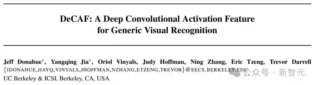 这篇论文还是Caffe之父贾杨清就读于UC伯克利,在谷歌实习期间和团队合作完成的经典之作。 他曾在采访中表示,2013年在谷歌实习时喝了太多咖啡,由此起名DeCAF,为的是督促自己把咖啡戒了。