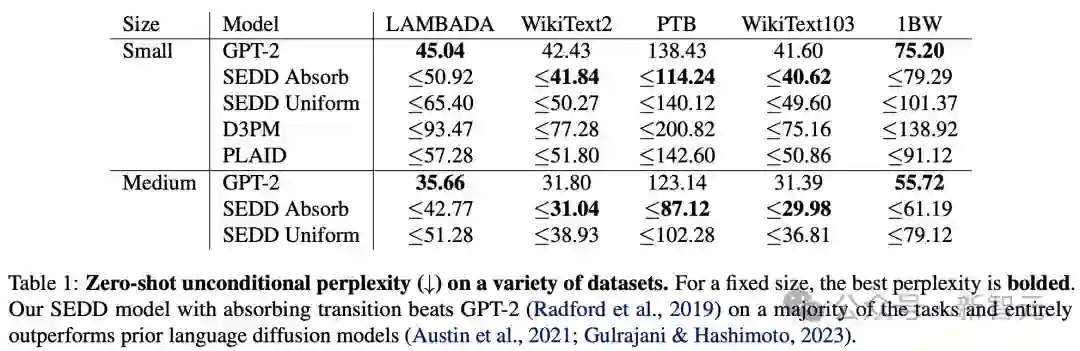 论文地址:https://arxiv.org/abs/2310.16834 这项研究提出了一个全新的机器学习模型SEDD(Score Entropy Discrete Diffusion),主要针对离散数据生成任务。 当前,扩散模型在许多生成建模任务中,展现出突破性的性能,但在自然语言等离散数据领域却表现不佳。 论文中,作者提出了得分熵(score entropy)的概念,来弥补这种差距。 这是一种新颖的损失函数,自然地将得分匹配扩展到离散空间,无缝集成以构建离散扩散模型,并显著提升性能。 实验评估过程中,SEDD比现有语言扩散模型表现更好(困惑度降低25-75%)。 而且,它还在某些方面超过了GPT-2等自回归模型。