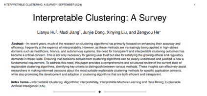 关键词—可解释聚类、算法可解释性、可解释机器学习与数据挖掘、可解释人工智能(XAI) 导论