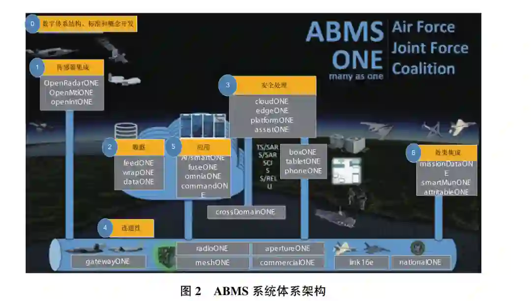 在美军“联合全域作战”最顶层作战概念背景下应运而生的先进作战管理系统(Advanced Battle Management System,ABMS),是美国空军落实国防部发展联合全域指挥控制(Joint All-Domain Command and Control,JADC2)开放式、模块化、可快速迭代演进升级要求的官方解决方案。ABMS减少了对装备层面的关注,侧重通过构建云环境、人工智能和新的通信方法,使各军种能够无缝共享数据,实时协调海、陆、空、天和网电等所有作战域的军事行动。首先阐明ABMS的概念与定位,详细剖析了ABMS的核心基础与应用产品构成,进一步阐述ABMS联合演示试验历程与特点,以及当前ABMS主要进展计划。在此基础上分析总结了ABMS的突出特点和优势,提出跨域联合作战体系建设的必然性。 美国空军在2016年发布的《空中优势2030飞行计划》报告中首次提出了“先进作战管理系统(ABMS)”这一重要项目,并于2017年启动了系统项目规划。ABMS项目通过构建一个具有强生存能力的分布式系统,连接各类传感器并对传感器数据进行融合,提供更加有效的对空、对地移动目标指示、多域作战管理与指挥控制,并以分阶段的方式逐步完成对预警与控制系统(Airborne Warning and Control System,AWACS)E-3和对地监视与攻击指挥飞机(Joint Surveillance and Target Acquisition Radar System,JSTARS)E-8的替代,夺取未来空中优势,最终实现ABMS完全作战能力。