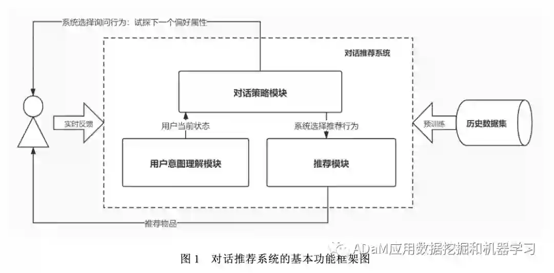 一个标准的CRS框架包含了三大功能模块:用户意图理解模块、对话策略模块和推荐模块。从功能模块来看,CRS与DS非常相似,这进一步说明CRS的核心思路来源就是DS。