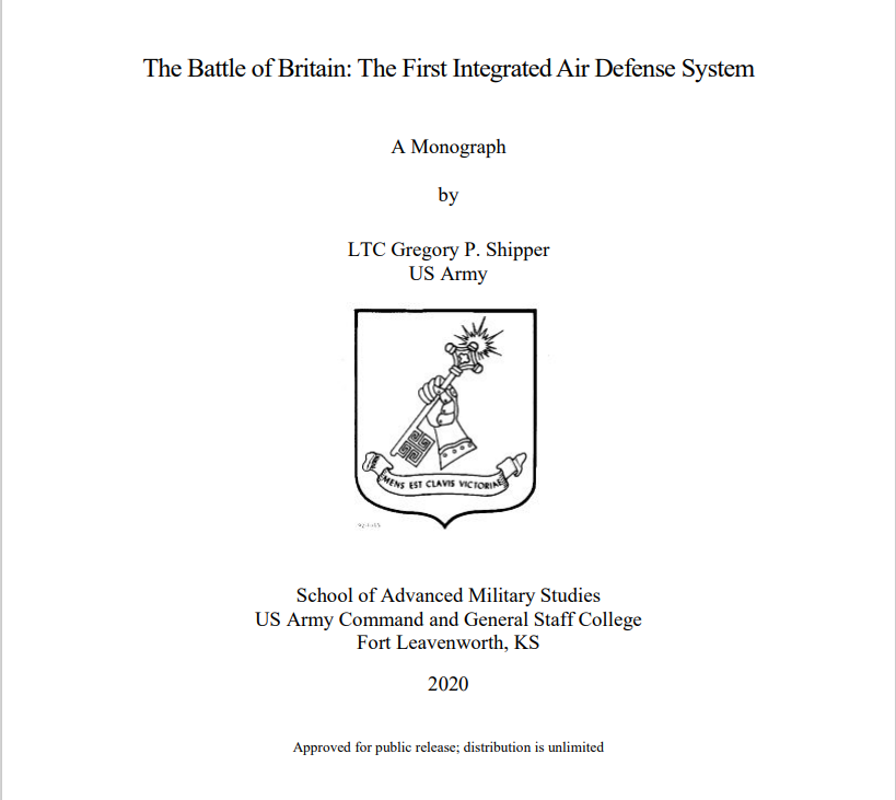 《不列颠之战:第一个综合防空系统 》,作者是LTC Gregory P. Shipper,50页。