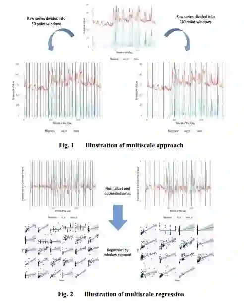 人类行为和生理学在多个时间尺度上运行,有多个相互作用的组成部分,包括精神和生理过程。分析时间序列数据的传统方法假定数据在单一时间尺度上运行;也就是说,数据产生的过程存在于单一时间尺度上,所以当以特定的速度测量时,感兴趣的模式是可以观察到的。因此,这些传统的方法往往会错过现实世界人类数据的关键属性,可能会掩盖重要的影响,导致更差的模型拟合和糟糕的预测性能。例如,心率(HR)数据经常使用多尺度方法进行研究(Peng等人,1995),许多研究结果表明,心脏搏动间期最好用多尺度而不是单尺度测量来描述(Peng等人,1995;Perkiömäki等人,2000;胡等人,2010)。