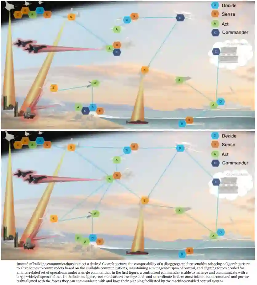 以决策为中心的战争将通过一个新的C2结构来解决任务指挥部的局限性,该结构将人类指挥与人工智能的机器控制相结合。人工智能的决策支持工具将允许初级指挥官控制分布式部队,适应环境或对手的行动,并对敌人的决策施加复杂性。通过这种方式,指挥官将能够执行以内容为中心的C3。