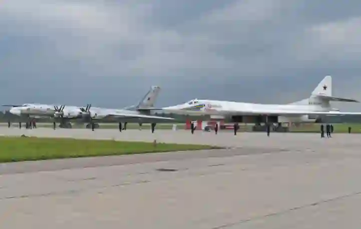 图为2017年8月库宾卡空军基地内的俄军图-95(左)与图-160轰炸机。图片来源:Flickr