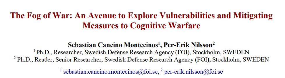 最近的学术研究强调了战争对心理健康的不利影响,然而早先的研究表明,极端条件下的平民和士兵不仅心理健康水平下降,而且可能更容易受到认知战的影响。这种易感性可归因于长时间呆在防空洞或战壕中造成的长期精神疲劳、有限的通信渠道、俄罗斯在信息领域的主导地位以及俄罗斯广泛的影响技术。这表明,战争迷雾对所有人的影响并不一致。在战争迷雾较为密集的地区,获取可靠信息的途径受到限制,再加上个人在极端情况下的认知应对机制,这些因素可能会造成可被利用的漏洞。此外,以人类认知为目标的影响技术,在针对认知能力受损的个体时,可能会由加大效应。本文旨在阐明认知战方法如何在极端条件下影响平民和军事人员,尤其是影响他们的感知能力。具体而言,本文提出了一个初步框架,用于研究和理解前线或远距离个体的经验,以便更好地了解他们如何感知不同的、可能相互冲突的信息来源。