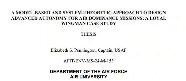 在对抗性空域环境中,决策者间的安全协调至关重要。尽管美国国防部(DoD)将人工智能僚机(AI wingmen)开发列为空战优先事项,但目前缺乏在同一环境中设计人机僚机间安全、整体协调的方法论。本论文提出一种框架,采用系统理论过程分析协调扩展(STPA-Coord)方法,分析并设计空优任务中忠诚僚机(Loyal Wingman)概念的整体协调机制。STPA-Coord是一种基于系统理论的安全与危害分析流程,用于在系统之系统架构中分析与设计决策者间的协调关系。通过该框架,本研究识别出290个损失场景与因果因素,最终提炼出83项适用于忠诚僚机架构的设计考量。