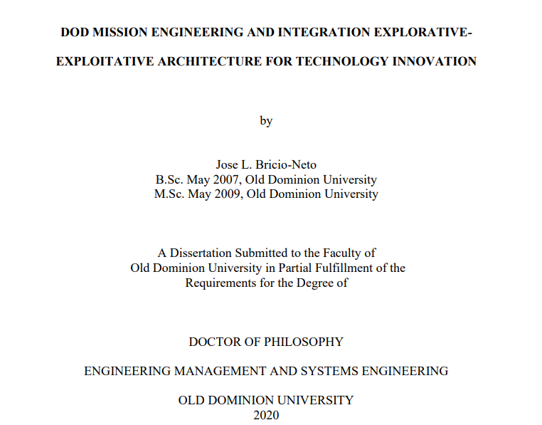 理论:本研究的种子类别、架构观点和命题将 Benner & Tushman (1996)、Rogers (2003) 的探索-开发式创新以及创新扩散从技术周期和竞争背景下以利润和市场份额为中心的表现扩展为更广泛的探索-开发式创新的跨部门模型,同时考虑到更广泛的技术周期、社会经济目标和社会福祉背景下的其他组织、管理、领导和资源特征。美国国防部和军事任务与战略规划结构。任务工程与集成命题功能基于 Sousa-Poza(2016 年)在复杂情况下任务工程连续体中的任务工程功能。