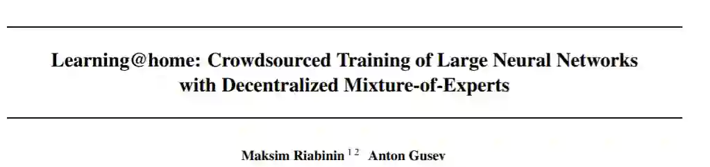 题目: Learning@home: Crowdsourced Training of Large Neural Networks with Decentralized Mixture-of-Experts