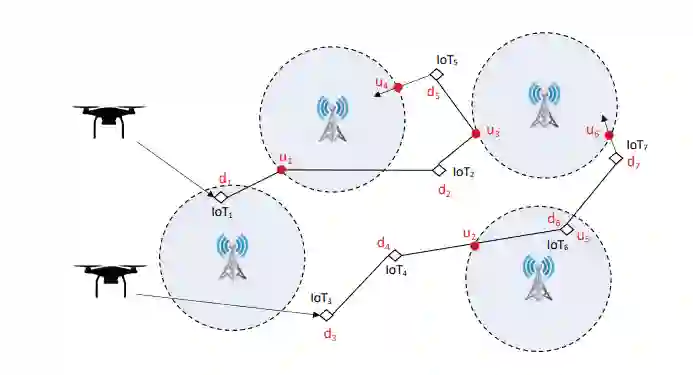 无人机凭借其灵活性与多功能性革新了众多领域。本论文研究无人机与物联网的协同工作,通过解决关键挑战来提升系统性能、提高效率,并保障无人机与地面控制站之间的可靠通信。从地面传感器和物联网网络高效采集数据至关重要,我们的研究聚焦于路径规划以最大化无人机采集效率。通过将无人机作为中继节点,优化其路径和飞行计划以减少延迟,确保数据准时采集与传输。此外,我们创新性地将信息时效性(AoI)概念融入无人机路由策略,计算从数据生成到通过蜂窝连接无人机完成传输的AoI,在保持连接性的同时最小化任务时间。测试表明我们的启发式方法在不同场景下表现优异。利用无人机中继通信能减少任务时间并加速物联网数据传输,相较其他方法具有创新优势。针对每个问题,我们首先采用整数线性规划(ILP)求解,随后引入快速启发式算法以节省时间,这种组合既保证了方案鲁棒性又提高了计算效率。