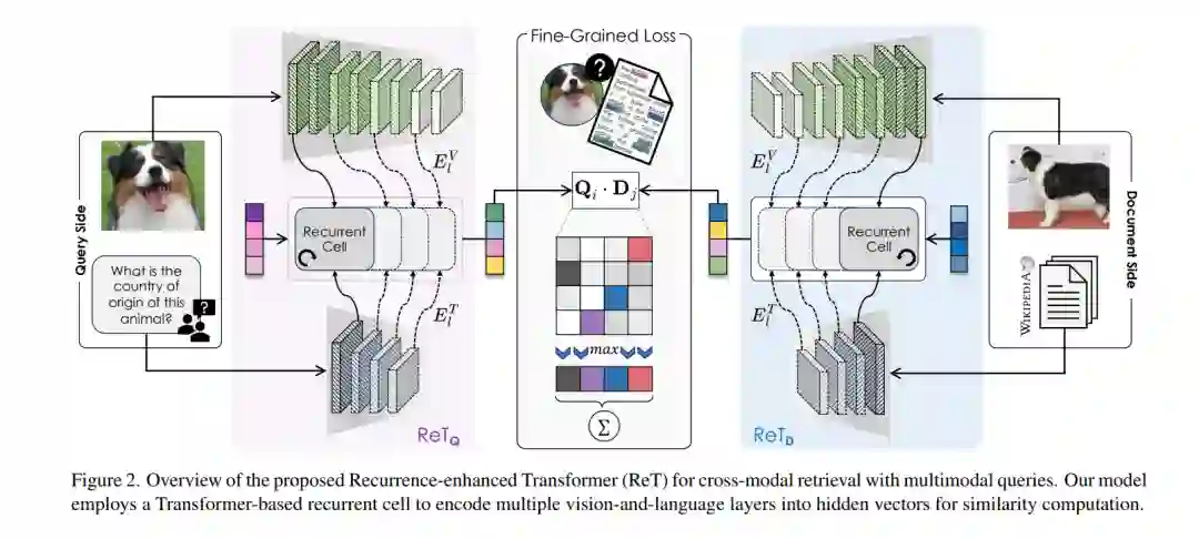 跨模态检索正因其在大规模训练、新颖的架构与学习设计以及在LLM和多模态LLM中的应用而受到研究界的广泛关注和认可。在本文中,我们进一步设计了一种支持多模态查询(由图像和文本组成)的方法,并能够在多模态文档集合中进行检索,其中图像和文本是交替出现的。我们的模型ReT采用了从视觉和文本骨干网络的不同层次提取的多级表示,无论是在查询端还是文档端。为了实现多层次的跨模态理解和特征提取,ReT引入了一种基于Transformer的新型循环单元,该单元在不同层次上整合了文本和视觉特征,并借鉴了LSTM经典设计的Sigmoid门控机制。在M2KR和M-BEIR基准上的大量实验表明,ReT在各种设置下均实现了最先进的性能。我们的源代码和训练模型已公开,可在以下链接获取:https://github.com/aimagelab/ReT。 https://arxiv.org/abs/2503.01980