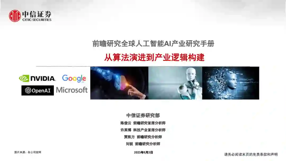 芯片&算力:算法快速迭代,以及对算力的巨大需求,料推动通用AI芯片(GPU)、云厂商早期高确定性受益。目前AI大模型领域的创新正在以月、周为单位快速向前推进,短期维度,预计通用AI芯片仍将是底层算法快速迭代的核心受益者。同时当前大模型在训练、推理环节仍需要巨大的算力承载,云厂商在算力基础设施、基础软件框架等层面综合优势明显, AI带来的算力增量料将主要向云计算平台转移,云厂商有望充分受益。但若后续算法迭代速度放缓,以及针对部分应用场景的专门优化,ASIC芯片需求料将快速展开,AI单位算力成本有望快速下降,但亦同时带来应用需求的进一步增长。