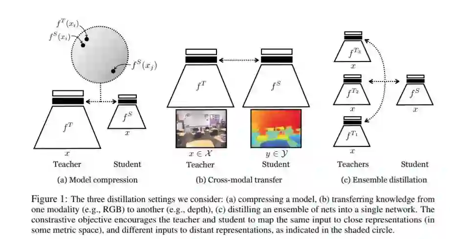 我们常常希望将表征性知识从一个神经网络转移到另一个神经网络。例如,将一个大的网络提炼成一个较小的网络,将知识从一种感觉模态传递到另一种感觉模态,或者将一组模型集成到一个单独的估计器中。知识蒸馏是解决这些问题的标准方法,它最小化了教师和学生网络的概率输出之间的KL分歧。我们证明这一目标忽视了教师网络的重要结构知识。这激发了另一个目标,通过这个目标,我们训练学生从老师对数据的描述中获取更多的信息。我们把这个目标称为对比学习。实验表明,我们得到的新目标在各种知识转移任务(包括单模型压缩、集成蒸馏和跨模态转移)上的性能优于知识蒸馏和其他前沿蒸馏器。我们的方法在许多转移任务中设置了一个新的水平,有时甚至超过教师网络与知识蒸馏相结合。