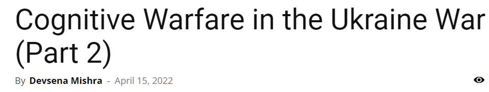 从外部来看,认知战的最新发展和相关的心理战术似乎是大国博弈的问题,像印度这样的国家有一定的余地保持 "中立",但问题是--我们能否忽视这样一个事实,即在这场公众认知战中,每一个用户,无论其民族/文化身份如何,都有意无意地成为某些地区/国家或全球兵力的潜在成员,为境外兵力的利益服务?