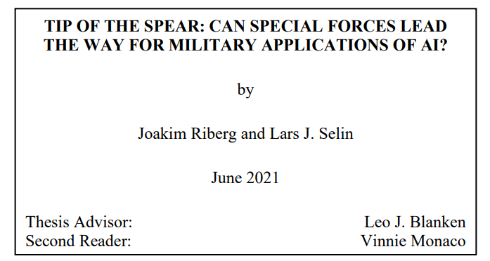 随着人工智能(AI)的发展速度不断加快,尤其是在商业领域,军事领域有可能被甩在后面。这对世界各地的特种作战部队(SOF)来说存在问题,因为他们往往最先遇到非正规对手使用的新方法和新技术。通过研究人工智能领域的当代研究和采访专家,作者采用混合方法探讨了特种部队在获取和评估新的人工智能能力时必须考虑哪些因素。此外,作者还试图澄清什么是人工智能,以及哪些因素会影响人工智能的采用和用户接受度。研究结果表明,要避免或尽量减少与人工智能相关的陷阱,军方必须与其他组织合作,重点关注正确的产品,并对组织内用户的教育和期望进行管理。本顶点报告没有推荐具体的产品或解决方案,而是提出了一个暂定模式,重点是降低风险和快速采购链,使 SOF 能够在当前战场上保持优势。