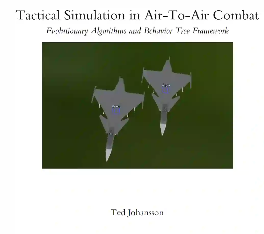 模拟环境中的逼真行为是必要的,尤其是在训练模拟器的空对空战争中。与有限状态机(FSM)等以前的技术相比,有了行为树这一新框架,行为可以变得更加逼真、模块化、灵活和可扩展。人工运算符或智能体通常是静态构建的,这意味着一旦它们以特定方式构建,就不会改变其行为,因此在对它们进行一些练习后,就很容易预测它们的行为。即使是静态构建的智能体,其行为也会变得非常复杂,它们必须能够以合作的方式应对环境和其他智能体。利用新的算法和框架,这些智能体及其行为可以不断学习新的战术进展,并在不同的可能交战技术之间进行切换,以挑战人类操作员。智能体可以变得更智能、更逼真,帮助人类飞行员训练新的战术方法。该技术将在未来帮助设计人员看到新的模式,并创建可在多种场景中重复使用的通用行为。