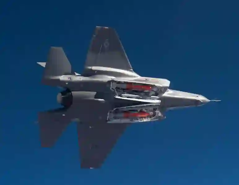 图:F-35A 战斗机的内部炸弹舱内装有两枚重达 2000 磅的 JDAM 炸弹。与导弹相比,JDAM 炸弹非常便宜:它是由铸钢制成的 "铁炸弹",里面装满炸药,再加上相对便宜的制导组件,以确保精确度。但你需要一架可生存的战斗机才能将它们送达目标。资料来源:美国国防部