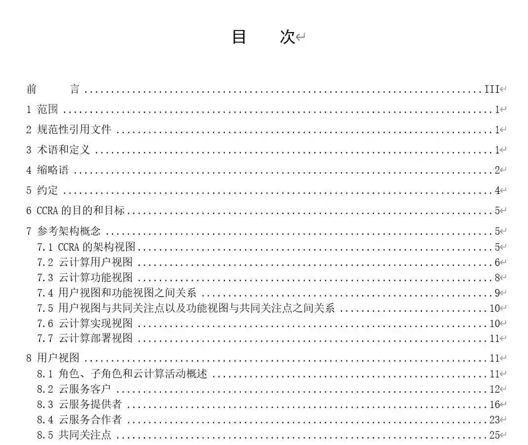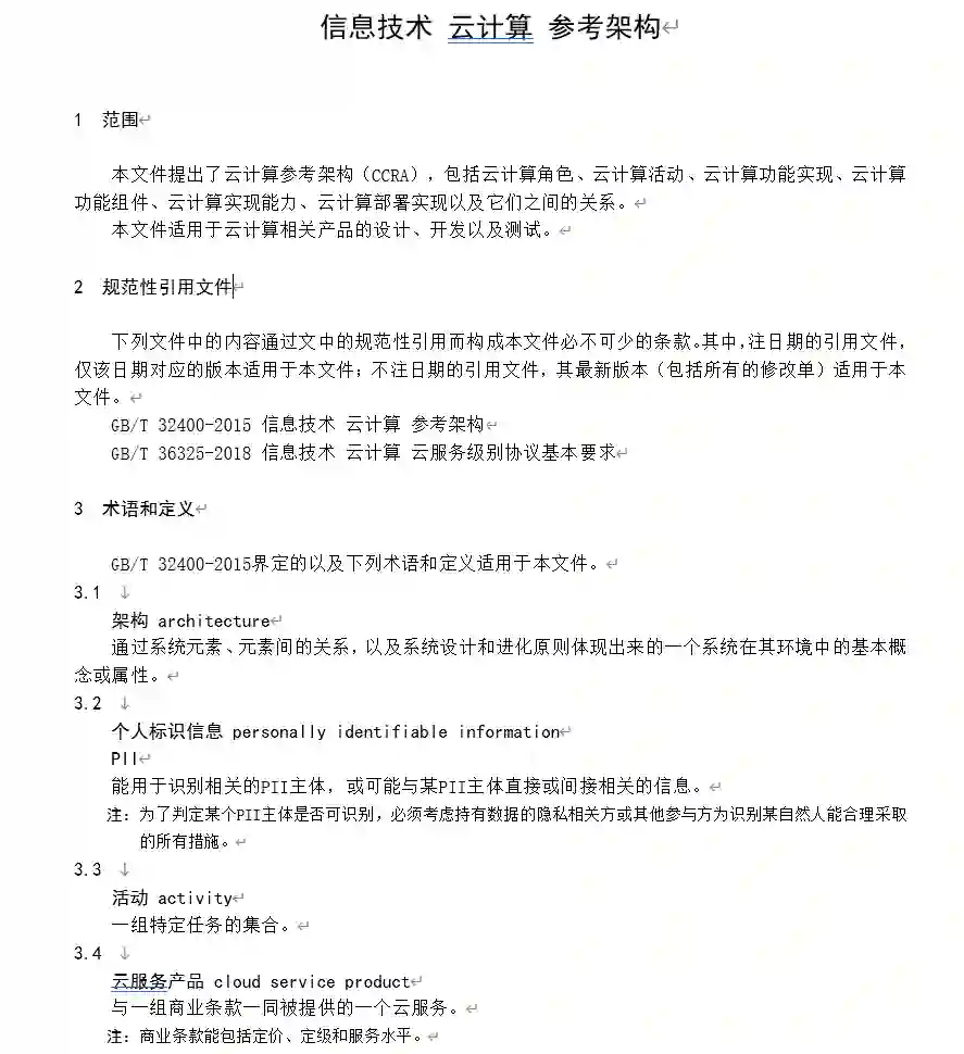 本文件提出了云计算参考架构(CCRA),包括云计算角色、云计算活动、云计算功能实现、云计算功能组件、云计算实现能力、云计算部署实现以及它们之间的关系。本文件适用于云计算相关产品的设计、开发以及测试。