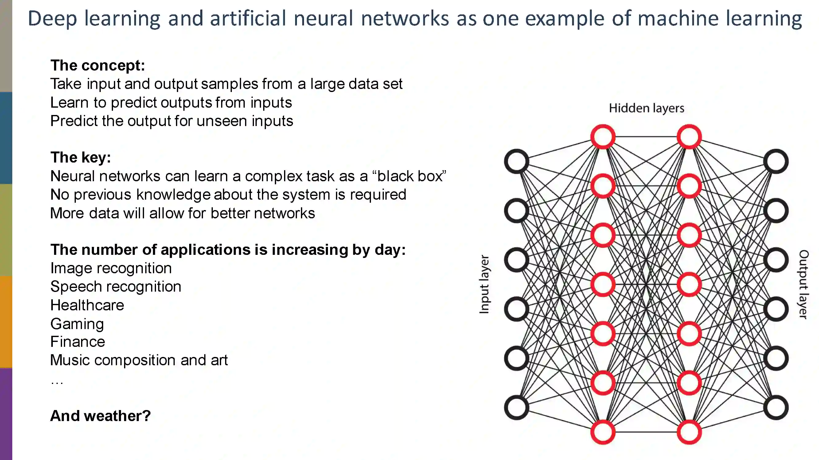 英国皇家学会大学研究员Peter Dueben发表“AI and Machine learning for weather predictions(人工智能与机器学习下的天气预测)”报告,33页PPT全面解读。