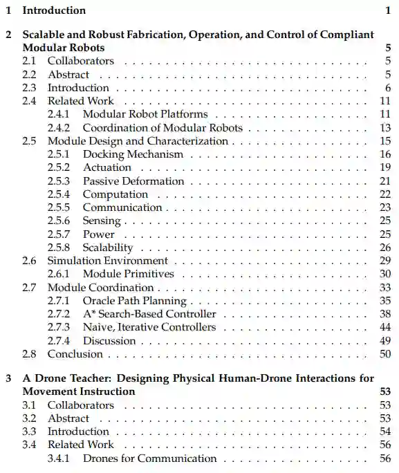 本研究通过物理交互增强机器人间协作的移动性,并优化机器人-人交互的通信效能。研究围绕两条主线展开:(1) 具身多机器人系统的算法开发;(2) 无人机与人类物理交互通信方法的探索与创新。在第一条主线中,我们研发了一种新型平面模块化机器人系统,其核心贡献在于构建了可扩展的制造与操作系统架构。这需要开发新型协调算法,特别权衡能耗效率、计算可扩展性与连接冗余度等关键参数。在第二条主线中,我们专注于理解、设计与应用无人机与人类之间的物理交互接触。物理接触作为人机协作的有效通信模式,在无人机交互领域尚属探索不足。随着无人机日益融入人类生活空间,理解这类交互对安全拓展应用场景至关重要。我们通过用户研究揭示了全身物理交互中的新型通信方法。