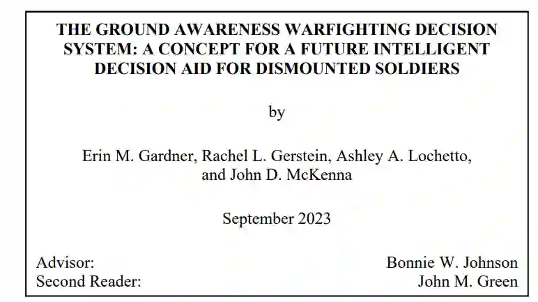 本报告研究了如何利用人工智能(AI)解决方案,结合传感器数据和更高级的企业级机器学习(ML)算法,改进战术决策,提供先进的目标定位解决方案,并为艰苦环境中的步行作战人员推荐行动方案(COA)。该团队采用系统工程分析方法,为战术边缘的人工智能辅助决策系统提出要求并进行概念设计。团队将这一未来能力命名为 "地面感知作战决策(GAWD)系统"。设想中的 GAWD 能力将提供一个功能强大的人工智能/ML 骨干架构,用于在边缘传输战术相关数据,供士兵实时处理和分析,以确定目标和选择路线。此外,该能力还能监测士兵的健康状况,并将信息提供给指挥部。未来的 GAWD 系统概念将利用人工智能、ML、增强现实 (AR)、虚拟现实 (VR) 和机身处理来分析数据,从而在终端用户设备 (EUD) 或平视显示器 (HUD) 上触发实时通知和建议行动方案 (COA),以帮助下装作战人员及时做出作战决策。研究小组进行了场景分析,探讨了在三种不同的地面部署士兵场景中使用 GAWD 系统的问题。研究小组研究了在军事行动中引入 GAWD 系统的道德影响。