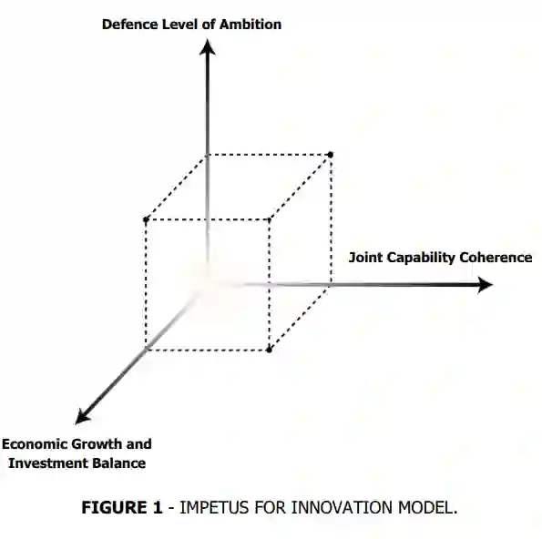 因此,陆军必须有效采用能够尽可能预测未来需求的组织流程,并提供能够在战略层面提高对实施适当转型过程必要性认识的有效解决方案。陆军迫切的转型需求可以用图 1 中的模型来表示。该模型结合了国家经济增长(Y 轴)、陆军与其他武装力量的一体化水平(Z 轴)和国防愿景水平(X 轴)。当形状规则时,模型显示的是一个处于平衡状态的系统,而当形状不规则时,模型则突出了关键领域。