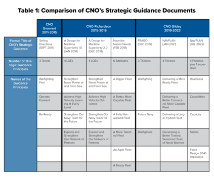 可以肯定的是,海军高层领导都会同意,无论谁担任海军司令,海军都有持久的体制目标,一致性对战略制定和兵力规划的好处是巨大的。这样做的好处包括:在主要平台和武器系统的实战化过程中确保战略方向的连续性;不需要新上任的海军司令官从零开始制定 "新的 "海军战略方向;根据四星级更新时达成的组织协议,在海军的前进道路上齐心协力;在战略沟通方面保持海军信息的一致性;减少错误的开始和无益的努力(见表 1)。