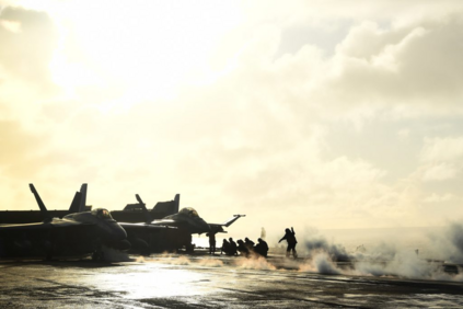 图:海军 F/A-18E 超级大黄蜂战斗机准备从 "哈里-杜鲁门 "号上发射,以支持 "三叉戟接点 18 "演习。图片来源:美国海军,海军三等士官 Adelola Tinubu。