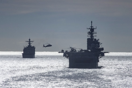 图:太平洋(2011 年 1 月 4 日)"阿利-伯克 "级导弹驱逐舰 "斯托克代尔 "号(DDG 106)在海上加油时与 "卡尔-文森 "号航空母舰(CVN 70)并肩而行。像 "阿利-伯克 "号这样的平台可以在混合战斗群中提供与航母相同的支持,而且运行成本要低得多。图片来源:美国海军/三等大众传播专家特拉维斯-门多萨(Travis K. Mendoza)。