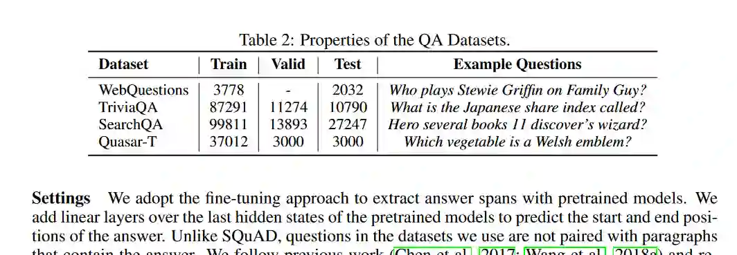 摘要: 预训练语言模型的最新突破表明了自监督学习在广泛的自然语言处理任务中的有效性。除了标准的句法和语义NLP任务外,预训练模型在涉及真实世界知识的任务上也取得了很强的改进,这表明大规模语言建模可能是一种隐含的知识获取方法。在这项工作中,我们进一步研究了BERT等预训练模型使用零镜头事实完成任务捕获知识的程度,此外,我们还提出了一个简单而有效的弱监督预训练目标,该目标明确地迫使模型包含关于真实世界实体的知识。用我们的新目标训练的模型在事实完成任务上有显著的改进。当应用于下游任务时,我们的模型在四个实体相关的问答数据集(即WebQuestions、TriviaQA、SearchQA和Quasar-T)上的平均F1改进为2.7,标准细粒度实体类型数据集(即FIGER)的平均精度提高为5.7。