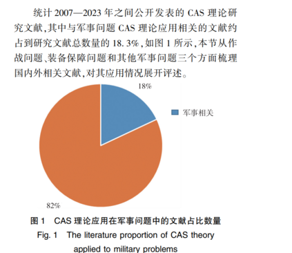 摘 要:复杂自适应系统(Complex Adaptive System,CAS)在科研领域广泛应用,在军事问题研究中也发挥了重要作 用,在分析军事问题复杂自适应特性的基础上,总结了在军事系统中应用的 CAS 理论建模方法,从作战问题、装备保 障和其他军事问题三个方面分析了 CAS 理论在军事问题研究中的应用现状,最后总结不足并分析未来 CAS 理论在 军事系统中的发展前景。 关键词:复杂自适应系统; 军事问题; 适应性; 建模方法; 应用分析