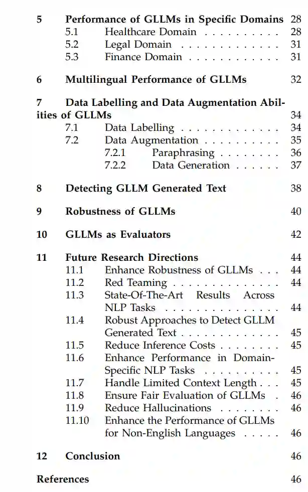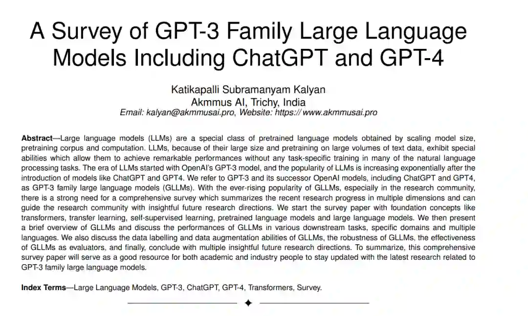 在这篇综述论文中,我们从多个维度对GPT-3系列的大型语言模型进行了全面的回顾,涵盖了超过350篇近期的研究论文。在这里,我们介绍了基础概念,GPT-3系列的大型语言模型,并讨论了这些模型在各种下游任务、特定领域和多种语言中的表现。我们还讨论了GLLMs的数据标注、数据增强和数据生成能力,GLLMs的鲁棒性,GLLMs作为评估者的有效性,并最终得出了多个有洞察力的未来研究方向。总的来说,这篇关于GPT-3系列大型语言模型的全面综述论文将为学术界和工业界的人们提供一个很好的资源,以便了解最新的研究进展。