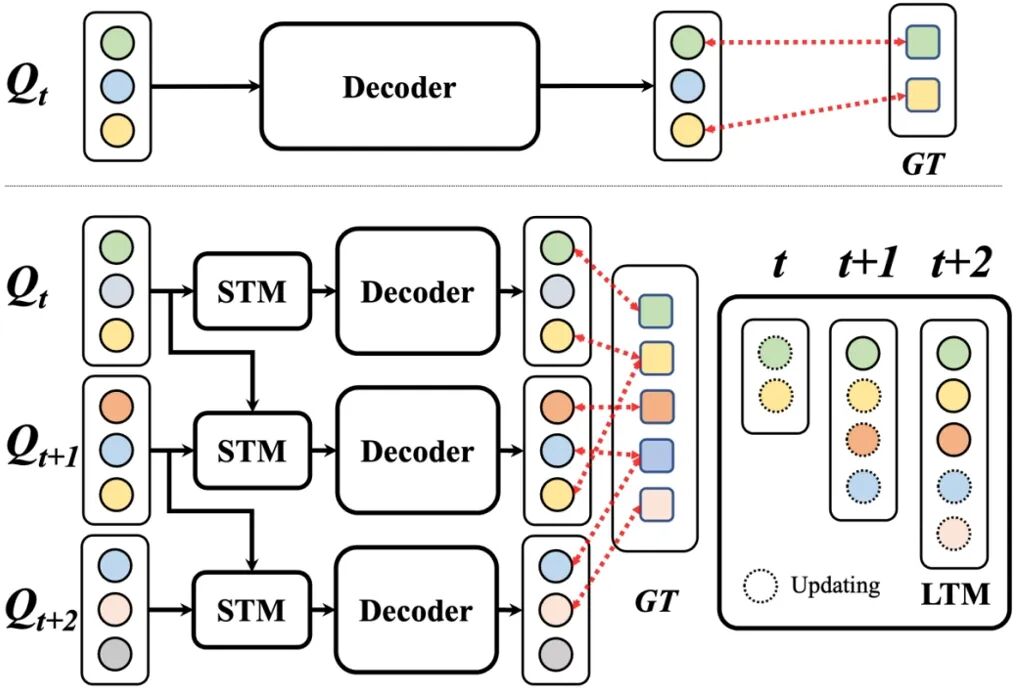 图1.与 ESAM的对比。我们引入两个额外模块 STM 与 LTM。STM 融合上一帧的实例特征;LTM 维护长期历史信息。22-b.png