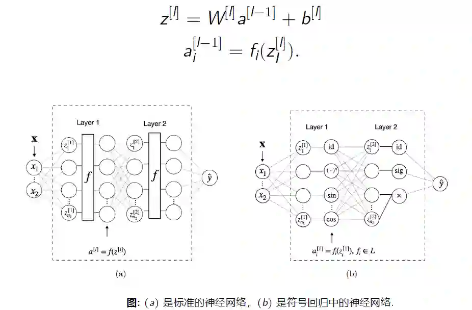 而非线性符号回归(Nonlinear SR)将深度神经网络中的激活函数替换成数学算子,从数据中学习数学表达式。