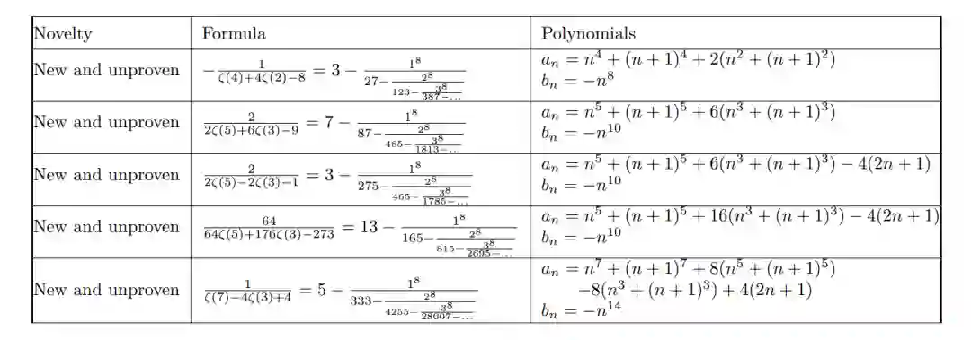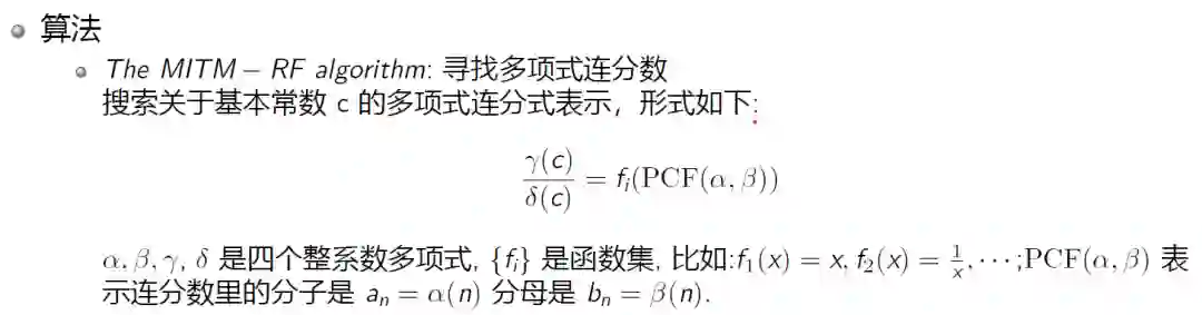 这项工作的核心思想是去寻找物理学或者数学里一些基本的常数的连分数的表示。 图:各种常数的连分数表示