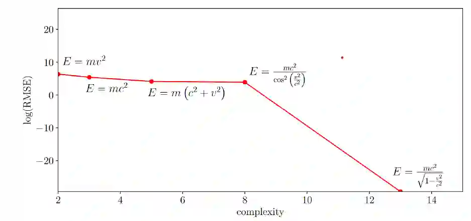 符号回归(symbolic regression)是一种从数据中寻找精确数学表达式的方法。与通用逼近理论不同,符号回归在给定一组输入和输出数据的情况下,试图找到一个函数来精确拟合这些数据。但这个函数是从一个事先定义好的函数库中选择的。这个库可以包含对数函数、三角函数、多项式函数等可能的函数。通过组合和基本算术运算,我们可以生成一个函数,以最好地拟合数据。 符号回归的重要性在于,它能够挖掘出物理学和数学中的第一性原理或精确公式,而不是像传统神经网络一样用一个近似的函数去逼近数据。这使得符号回归生成的函数具有可解释性。近年来,这种方法已被物理学家用于发现许多已知规律,如万有引力定律、爱因斯坦质能方程,以及费曼物理学讲义里很多已有的物理规律。然而,尚未通过这种方法发现未知的新规律,这可能是未来的研究方向。 就具体方法而言,符号回归方法可以通过向量化数学表达式来实现。它将数学表达式分解为单元,比如前缀表达式(即波兰表示法 Polish Notation,1920 年,波兰科学家扬 · 武卡谢维奇(Jan ukasiewicz)发明了一种不需要括号的计算表达式的表示法,将操作符号写在操作数之前)。类似于自然语言处理中把一个复杂的语句拆分成基本token的方法,一个复杂的数学表达式也可以被拆分成一些小token。然后,将token序列作为输入,使用机器学习模型进行训练,生成新的token序列,然后使用规则将其还原为数学表达式。