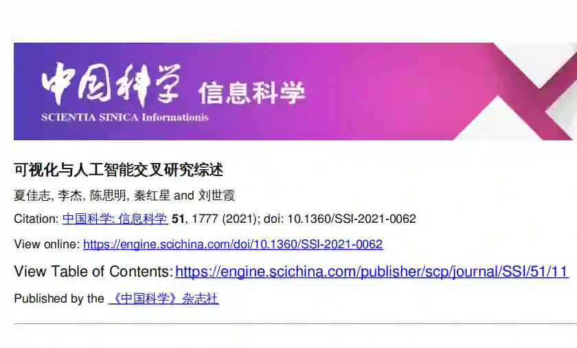随着人工智能技术的突破性进展, 人工智能与可视化的交叉研究成为当前的研究热点之一, 为人工智能和大数据分析领域的若干核心难题提供了启发式的理论、方法和技术. 一方面, 人工智能技术的创新应用提升了可视化的分析效率, 拓展了分析功能, 为大数据可视分析提供了强有力的工具. 另一方面, 可视化技术增强了以深度学习为代表的人工智能的可解释性和交互性, 为可解释人工智能提供了可靠的技术基础. 本文从面向人工智能的可视化技术和人工智能驱动的可视化技术两个方向, 分别介绍了数据质量改善、可解释机器学习、智能特征提取、可视化自动布局与生成、智能交互、智能故事叙述等6个重要问题. 对国内外的研究进展进行了分析, 并对发展趋势进行了展望.