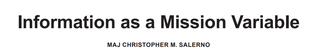 信息优势原则应作为战术领导者制定 COA 方法的补充。ATP 3-21.10 和 3-90.1 指出:"COA 描述了单元如何在决定性地点以最少的友军伤亡对敌人产生压倒性战斗力的效果。这两份ATP都只提到了制定COA过程中的信息。然而,正如 FM 3-0 中关于信息的论述,"信息也是战斗力的关键组成部分,是夺取、保持和利用主动权以及巩固成果所必需的"。