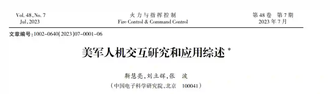 美军从二战开始就认识到“人”的因素在武器装备功效发挥中的关键作用,从二战到后续多场美国参与的现代化战争中,美军装备制造企业一直在探索如何更好地发挥“人”在武器装备交互回路中的效能。人机交互作为一门复杂的交叉学科、系统工程,做好人机交互工作,要将“人”作为首要研究对象。在20世纪80年代,人机交互概念正式提出之前的几十年时间里,人机功效或人因工程一直是提高“人”与机器综合效能的关键研究问题。随着计算机技术的发展,新的交互技术不断涌现,牵引美军人机交互技术的研究进入快速发展期。通过文献调研的方法,总结提炼了美军人机交互4个主要方面:认知系统工程、交互可用性、VR/AR交互和人/无人机交互,并分别总结叙述美军人机交互相关研究的技术认知、应用案例和发展趋势,为我国相关领域的发展提供借鉴参考。