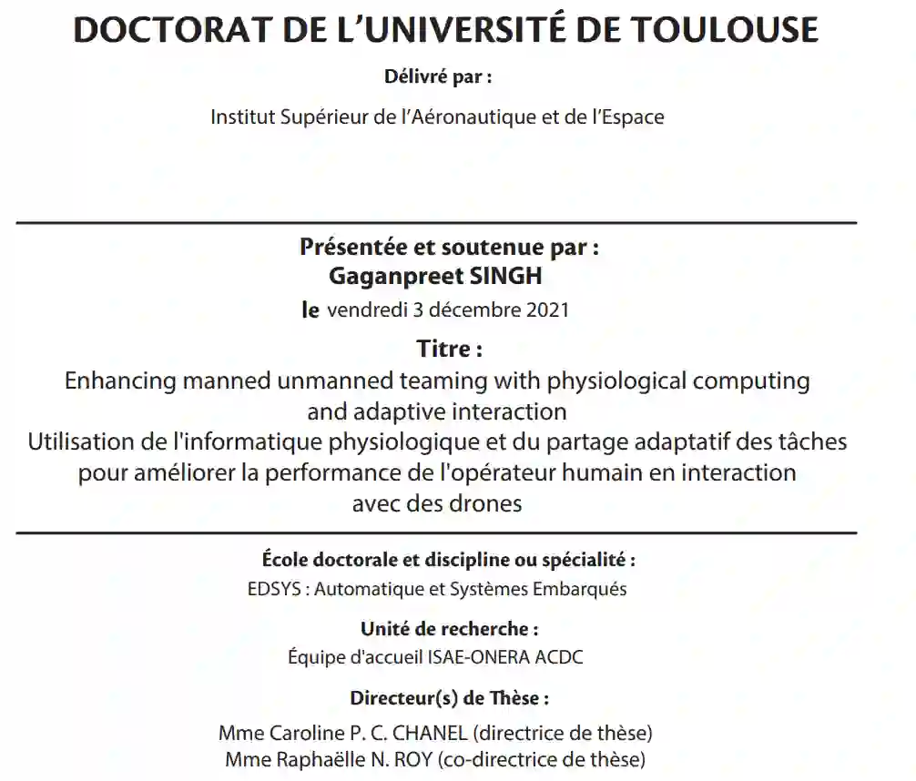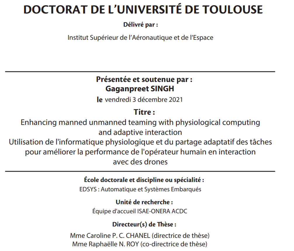 最后,本论文工作的结论是在第二次实验活动中对这种基于 POMDP 的交互控制策略进行性能和心理工作量管理方面的评估。在这次实验中,所有开发项目都进行了整合和在线测试:生理特征的提取和处理、人类精神状态的估计以及交互的适应。主观结果显示,与非自适应交互系统相比,在使用自适应方法时,参与者明显感觉工作量减少。在自适应条件下,他们的飞行得分也明显提高。这些研究结果表明了基于 POMDP 的自适应交互控制如何在提高性能的同时减少操作员的工作量,从而为实现更高效、更强大的 MUM-T 铺平道路。除了几篇短文外,本论文还发表了一篇期刊论文和一篇会议论文。