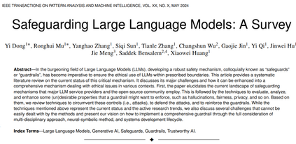 像安全关键软件一样,需要一个系统化的过程来涵盖开发周期(从规范、设计、实施、集成、验证、确认到生产发布),以谨慎地构建护栏,如ISO-26262和DO-178B/C等工业标准所示。本综述从第2节的一些背景介绍开始。目标是(1)了解现有的护栏框架,这些框架用于控制LLM服务中的模型输出,以及评估、分析和增强护栏以应对特定理想属性的技术(第3节);(2)了解用于克服这些护栏的技术,以及防御攻击和强化护栏的技术(第4节);然后讨论如何实现完整的护栏解决方案,包括为特定应用背景设计护栏的一些系统化设计问题(第5节)。