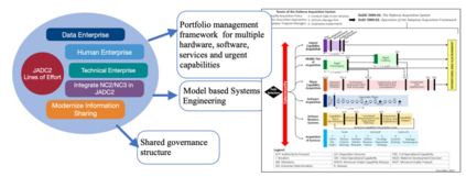 JADC2由数据、人力和技术企业的多种努力组成,适合于硬件、软件、商业和主要采购。处理多个同时进行的能力采购需要一个基于系统的框架来整合多个项目,以及一个组合管理方法来资助、管理和整合JADC2的多个潜在的非同步采购项目。组合管理框架将需要纳入JADC2相关项目的共享治理结构(治理架构)。
