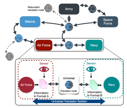 通用翻译器可以由多个节点以及冗余组成,可以作为翻译器的分体式网络运行,并且可以很容易地扩展、现代化,并在未来用最新的最先进的技术进步进行升级,并根据需求重新安排以创建新的网络功能和地形。这一概念将提供高度的灵活性、适应性和可升级性,并为所有部队的所有资产和传感器增加一层安全和保护。