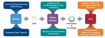 感知(Sense):为了确保联合数据对所有部队/军种和联合部队指挥官的可用性和有用性,需要一个共同和共享的感知方法和信息管理技术。该方法要求在作战环境中可以进行信息收集和提供,并交付给接收者。JADC2结合先进的信息管理技术,实施了一种新颖的数据共享方法。这些网络是在联合数据 "结构 "的基础上建立的,并使联合部队能够实现可用于决策的信息。通过传感和整合,有可能 "发现、收集、关联、聚合、处理和利用来自所有领域和来源(友好、敌方和中立)的数据",并 "分享信息作为理解和决策的基础"(Kirtland, n.d.)。