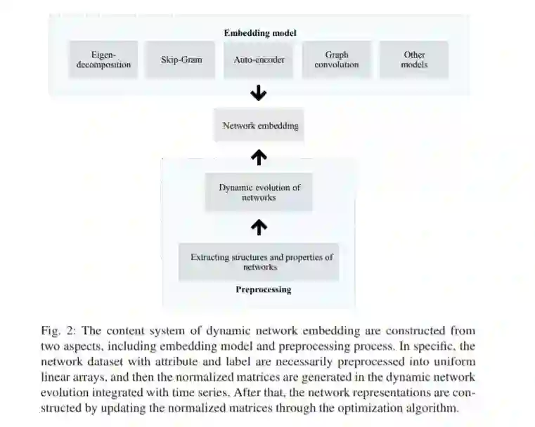 现实网络由多种相互作用、不断进化的实体组成,而现有的研究大多将其简单地描述为特定的静态网络,而没有考虑动态网络的演化趋势。近年来,动态网络的特性跟踪研究取得了重大进展,利用网络中实体和链接的变化来设计网络嵌入技术。与被广泛提出的静态网络嵌入方法相比,动态网络嵌入努力将节点编码为低维密集表示,有效地保持了网络结构和时间动态,有利于处理各种下游机器学习任务。本文对动态网络嵌入问题进行了系统的研究,重点介绍了动态网络嵌入的基本概念,首次对现有的动态网络嵌入技术进行了分类,包括基于矩阵分解的、基于跃格的、基于自动编码器的、基于神经网络的等嵌入方法。此外,我们仔细总结了常用的数据集和各种各样的后续任务,动态网络嵌入可以受益。在此基础上,提出了动态嵌入模型、大规模动态网络、异构动态网络、动态属性网络、面向任务的动态网络嵌入以及更多的嵌入空间等现有算法面临的挑战,并提出了未来可能的研究方向。