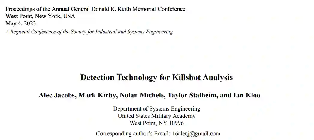 在特种作战训练中,高效、准确的射击技术对建立一支随时待命的致命部队至关重要。当前训练过程的特点是个别指导和评估,任何数据收集都来自手工纸质流程。目标射击检测自动化将提供即时反馈的机会,并为射手长期评估提供更好的数据。系统化的射击分析方法可提高陆军靶场的能力,为陆军最宝贵、最具杀伤力的资产--士兵提供工具。