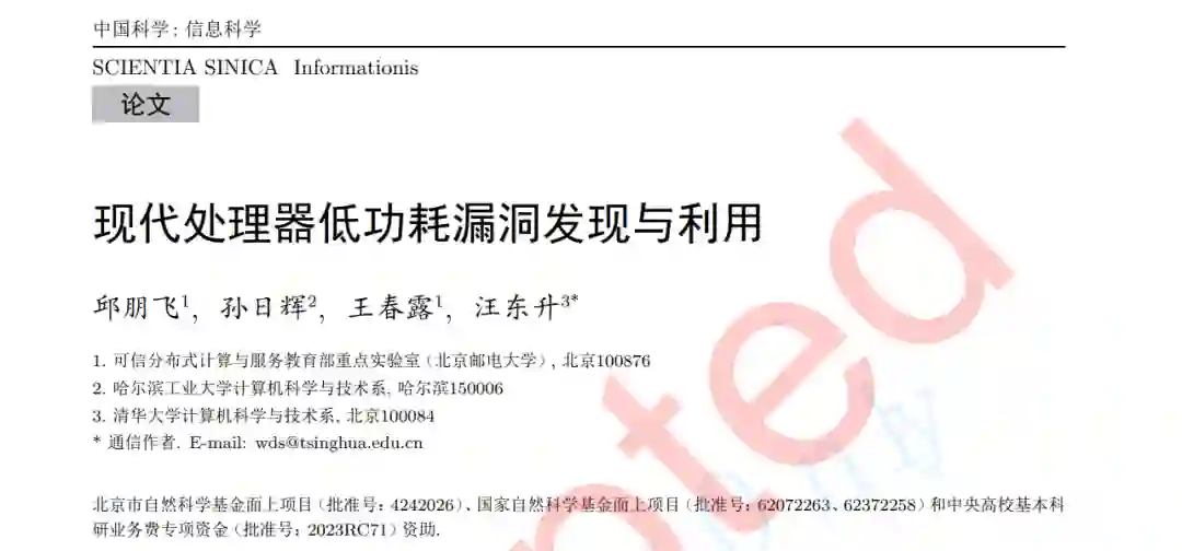 低功耗是现代处理器设计的重要目标之一, 为了降低功耗, 现代处理器广泛应用了动态电源管理(Dynamic Voltage and Frequency Scaling, DVFS)技术. 本文聚焦DVFS技术的安全性开展研究工作, 发现主流处理器的DVFS单元在电压和频率管理方面存在安全缺陷, 由此造成三个硬件漏洞:通用处理器的低电压故障注入漏洞、图形处理器(Graphics Processing Unit, GPU)的低电压故障注入漏洞和通用处理器的频率隐藏通道漏洞. 基此, 本文提出软件控制的低电压故障注入攻击和频率隐藏通道攻击两种新的攻击方法, 整个攻击过程完全使用软件实现但是不利用任何软件漏洞. 本文通过四个攻击实例验证了所提出的方法的有效性, 实现了攻破主流可信执行环境ARM TrustZone和Intel软件防护扩展(Software Guard Extensions, SGX)、使GPU上的人工智能模型失效以及构建数据秘密传送通道等目的. 据我们所知, 本文实现了首个针对Intel处理器和GPU的软件控制的硬件故障注入攻击、首个针对ARM处理器的软件控制的低电压故障注入攻击. 本文分别从硬件和软件两个角度提出防御措施, 可助力处理器设计人员设计新一代安全低功耗技术.