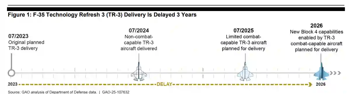 洛克希德·马丁公司的“技术更新3”(TR-3)——一套耗资19亿美元、对4批次现代化工作至关重要的硬件与软件升级套件——是2024年飞机交付延迟的主要成因。评估洛克希德·马丁公司按时交付飞机的能力将有助于确定项目应计划采购的飞机数量。近年来,项目方向洛克希德·马丁等承包商支付了数亿美元旨在提升按时交付率的激励费用。然而,按时交付激励机制的结构允许承包商延迟最多60天交付仍能获得部分费用。为避免奖励延迟交付行为,项目方应重新评估在未来合同中运用激励费用的方式,并更好使其与预期生产成果相匹配。随着新现代化子项目的建立,F-35项目有机会加速能力交付。GAO关于产品开发领先实践的研究发现,领先企业采用设计、验证与生产的迭代流程以快速开发并交付产品。尽管项目已实施这些实践的某些方面,但扩展现代设计工具(如开发人员可在模拟环境中测试的数字模型)的应用将有助于其比以往更快速地向作战人员交付能力。